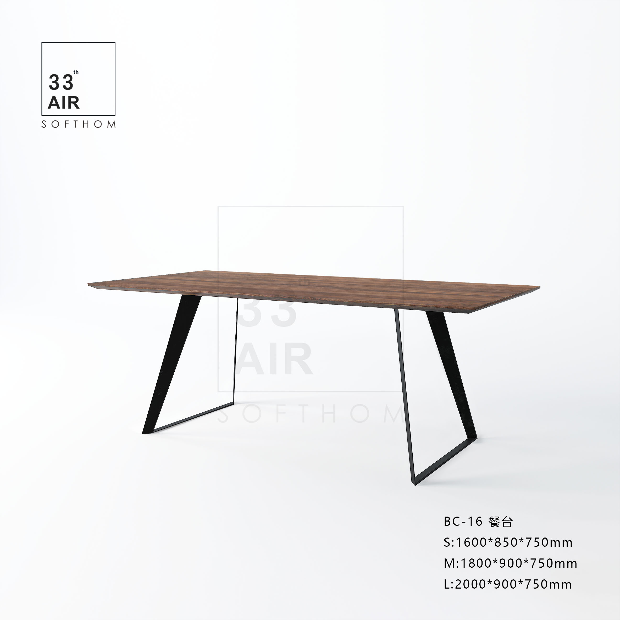 长方形餐台铁艺简约黑胡桃白橡实木BC-16