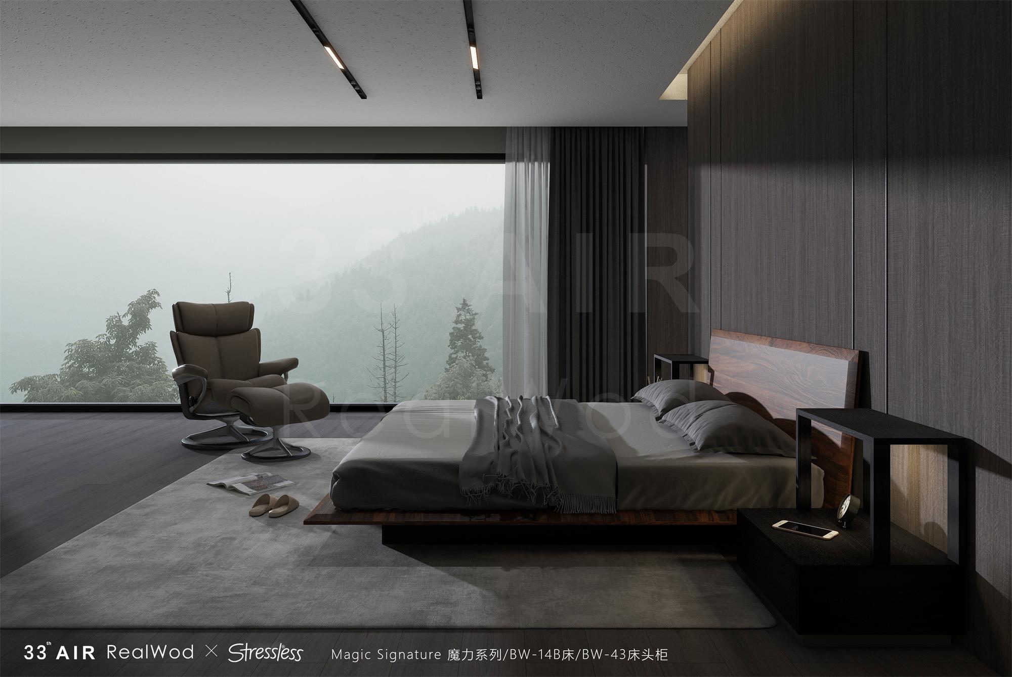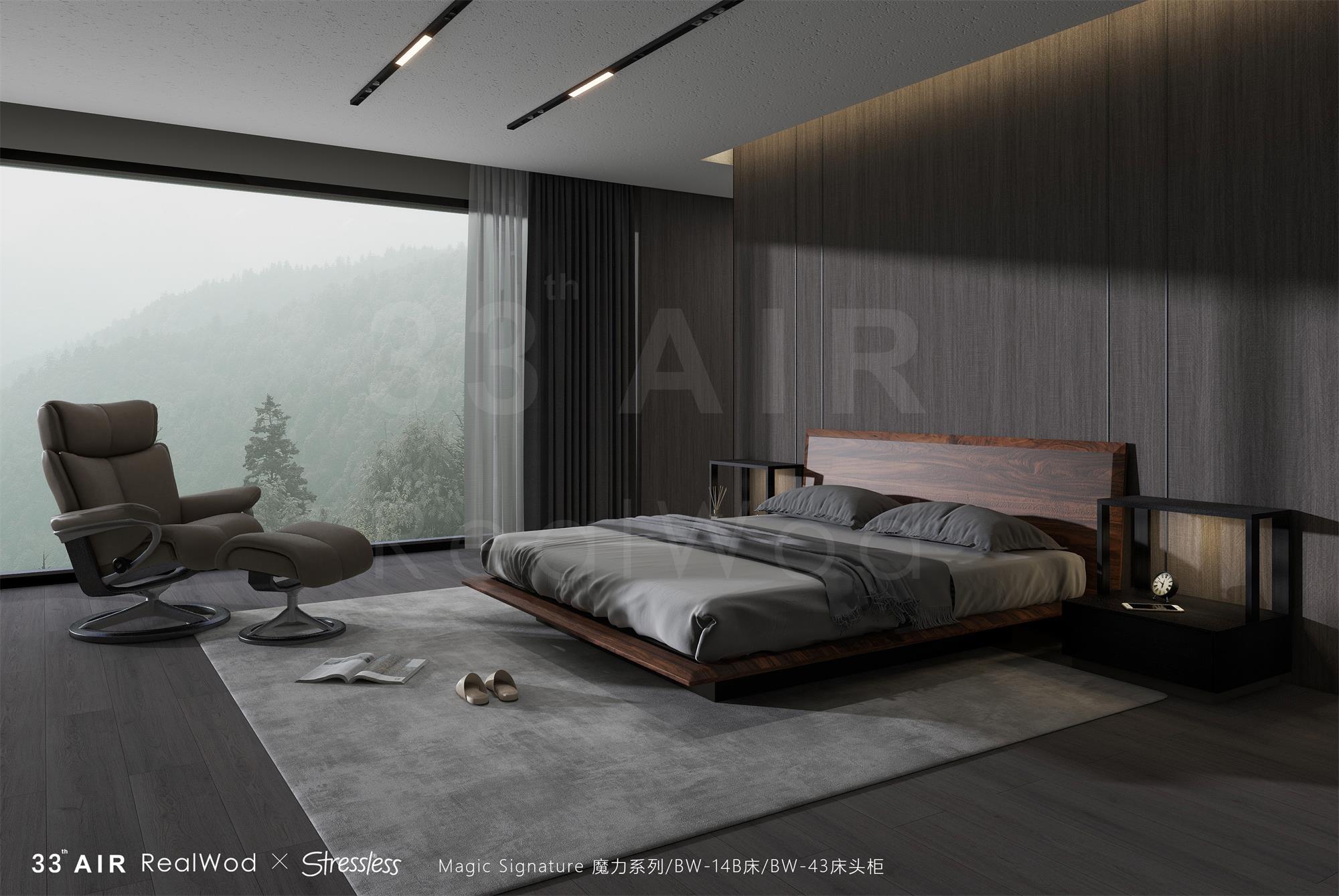 卧室实木床头柜灯光设计北美黑胡桃橡木BW-43