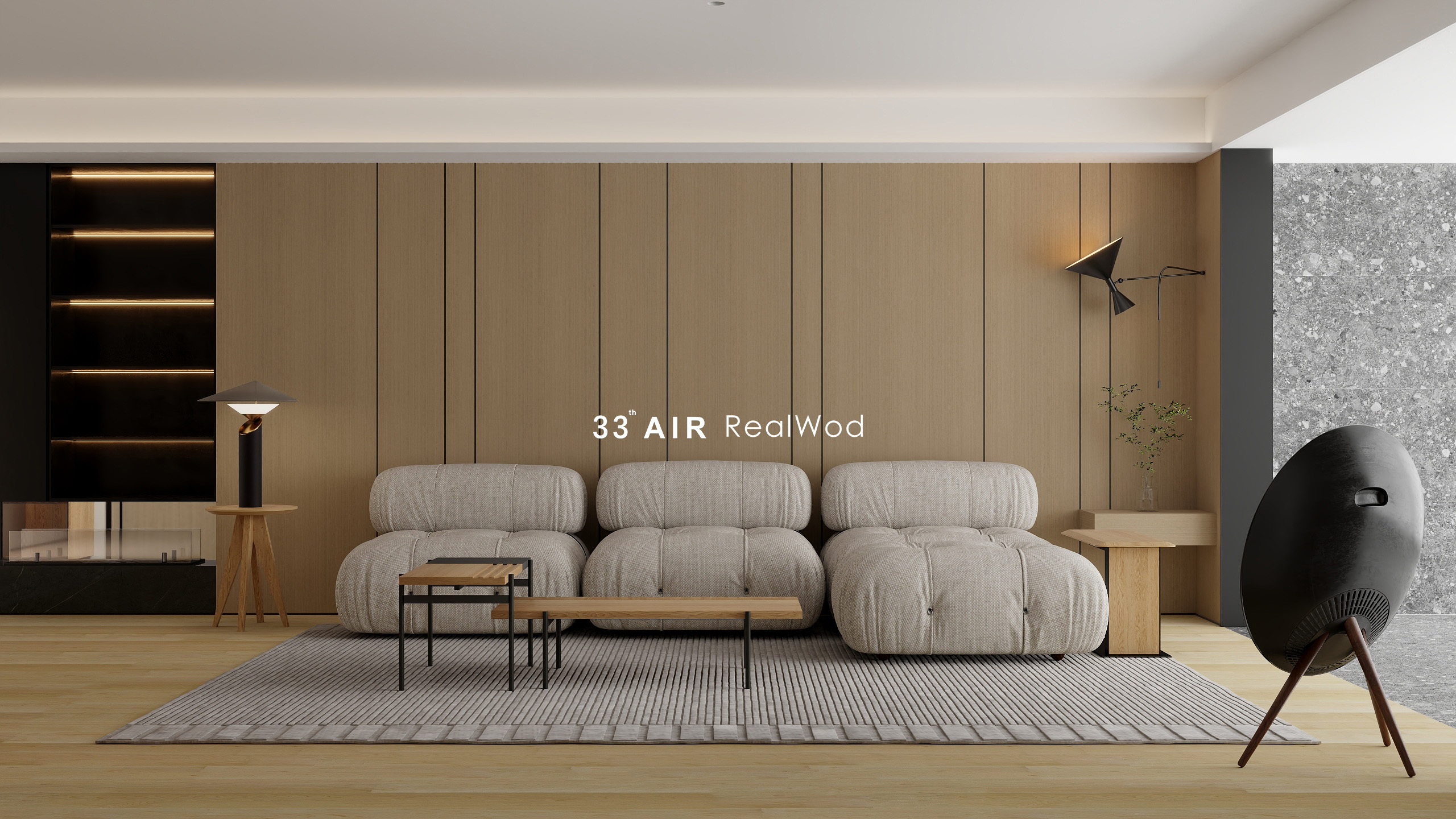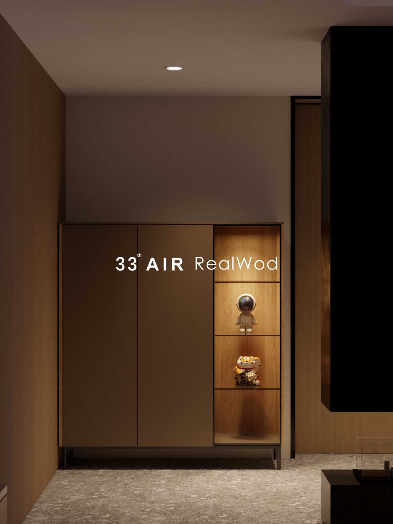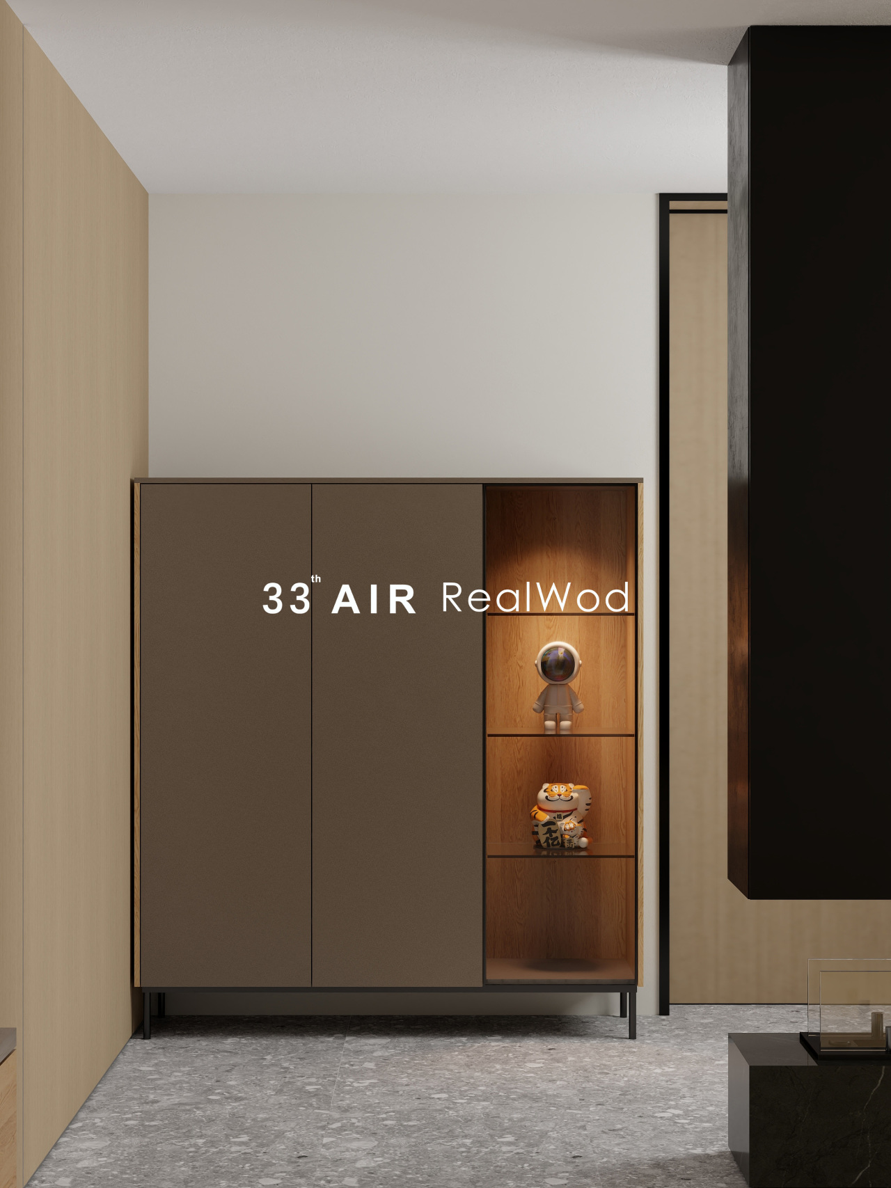 在黑灰与原木色为主的基调中