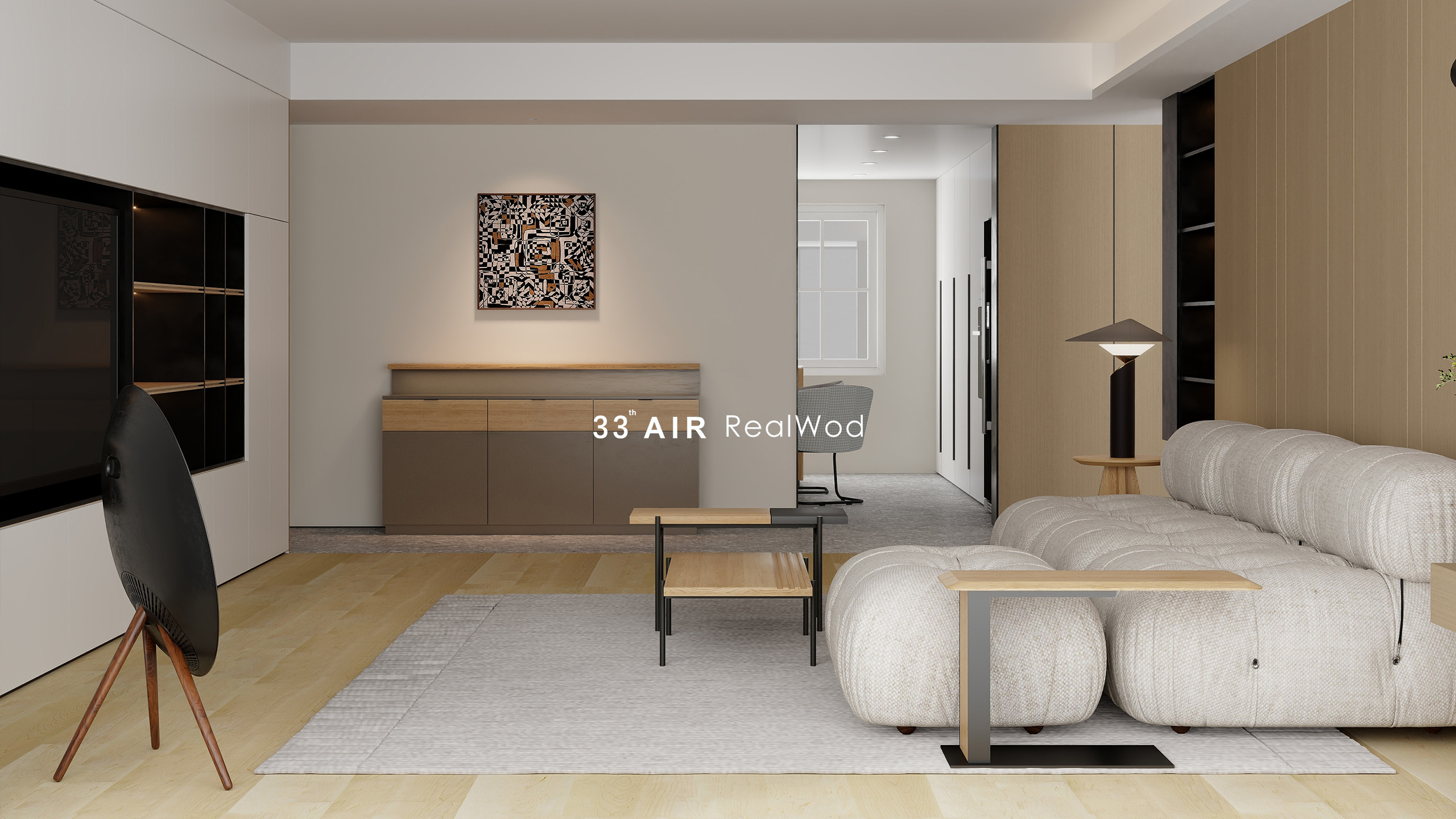 橡木茶水柜与浅色木地板形互相呼应