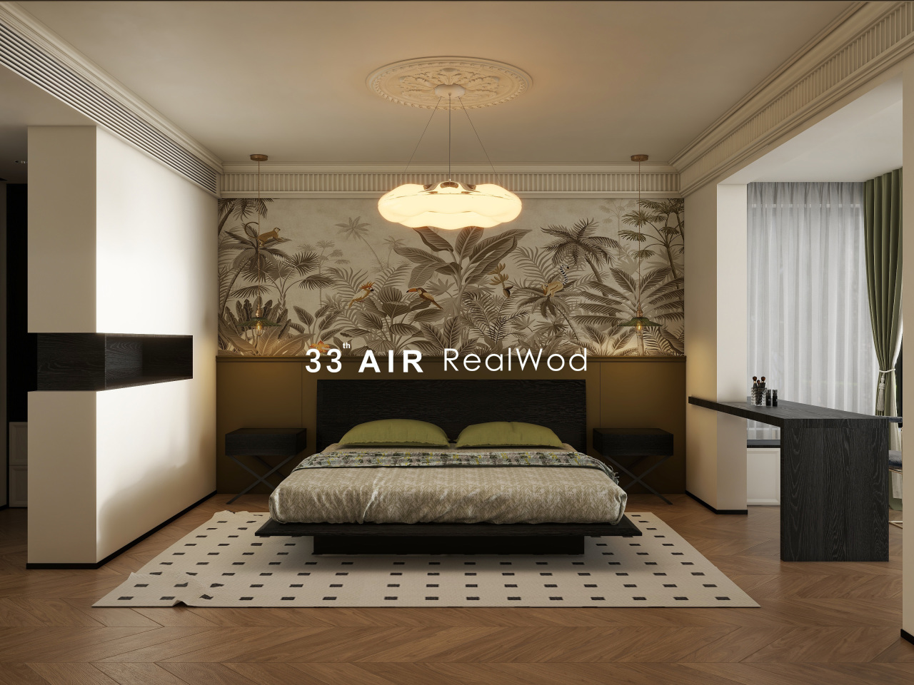 墙面艺术墙纸的使用,温馨而自然,法式古典的石膏线装饰带来特别的气质。黑色橡木的家具使用,让装饰的味道变淡,这也是让空间回归内心真挚的一面,包容内心的一切。喧嚣的城市内,这里是寻找自我的场所,安静不是沉默,而是一种莫名的陪伴。