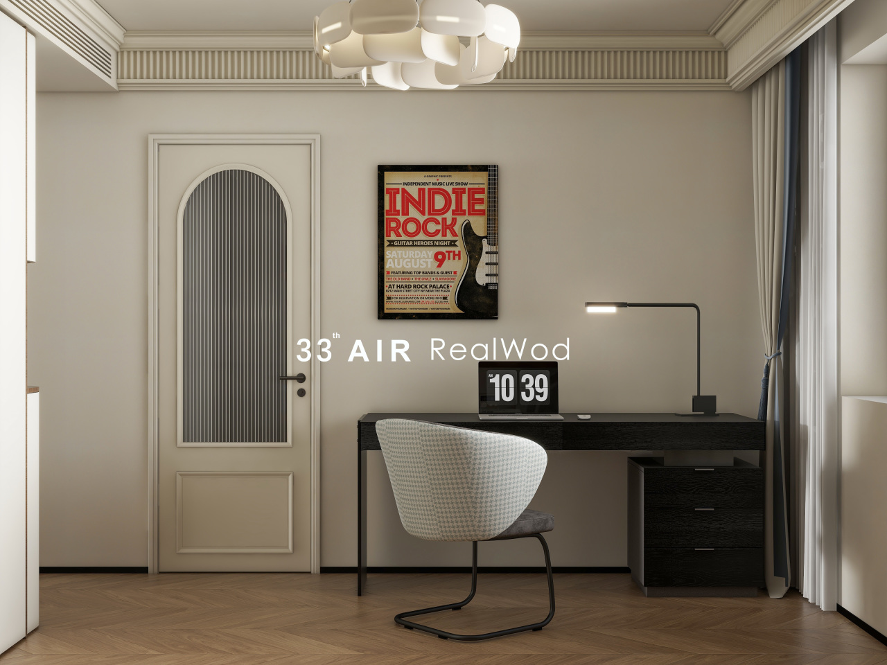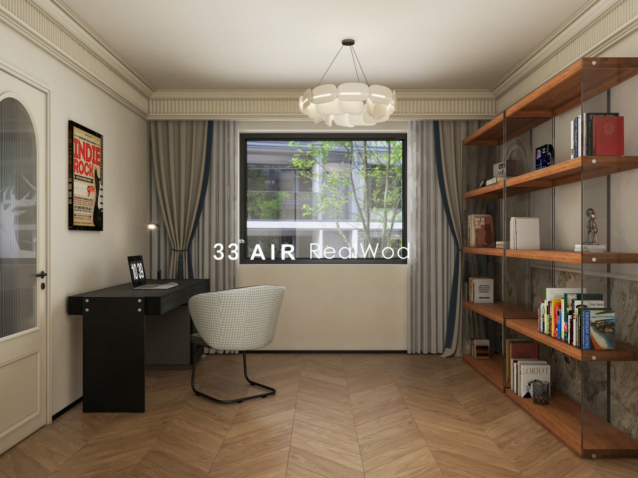 生活需要平淡,也需要仪式感。踏上人字拼木地板,可以感受到温暖和踏实,黑色橡木办公台,增加空间的元素,也让休闲时光更为舒适。