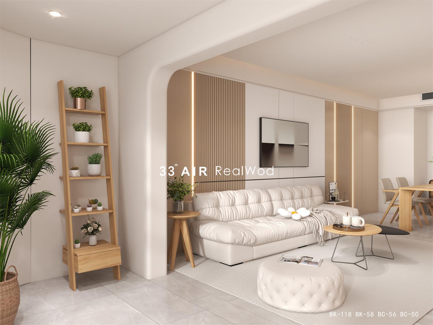 奶油色的空间与自然温润的原木相互搭配,引导充沛的日光走进室内,营造出更为开阔敞亮的居住环境,使家人能够在通透自然的氛围中交流互动。